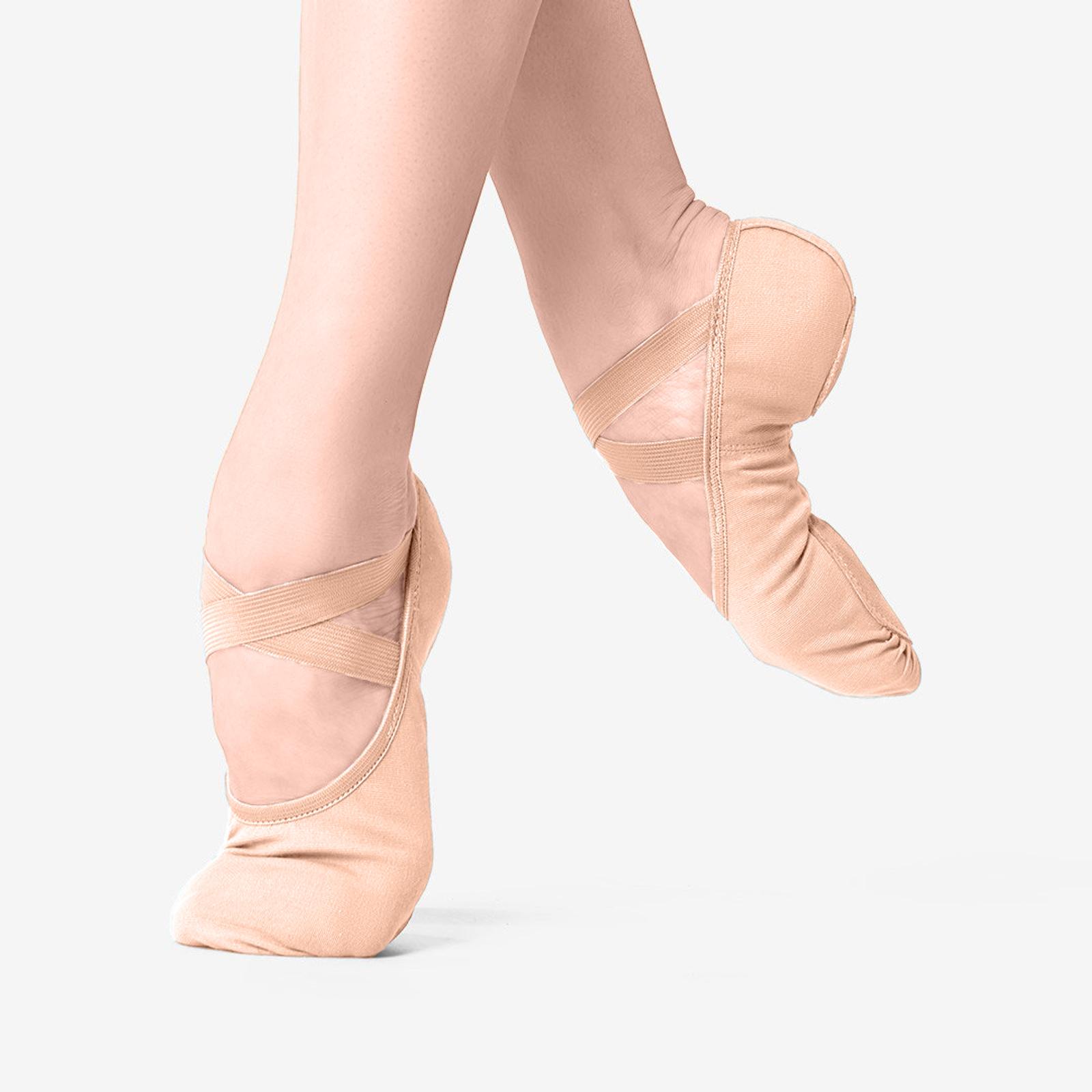 The So Danca Bliss SD16 is a favorite among dancers for its comfortable, streamlined design and versatility. This ballet shoe features a split-sole construction, allowing for maximum flexibility and ease of movement. Made from a soft, stretchy canvas, the SD16 molds to the shape of the foot, providing a custom fit that enhances arch support and showcases the dancer's lines beautifully. The shoe also includes a soft, cushioned heel and toe area for added comfort during long practice sessions. With its elasticized binding, there’s no need for drawstrings, giving it a smooth, clean look on the foot. Perfect for dancers of all levels, the So Danca Bliss SD16 combines comfort, style, and performance in a single shoe.